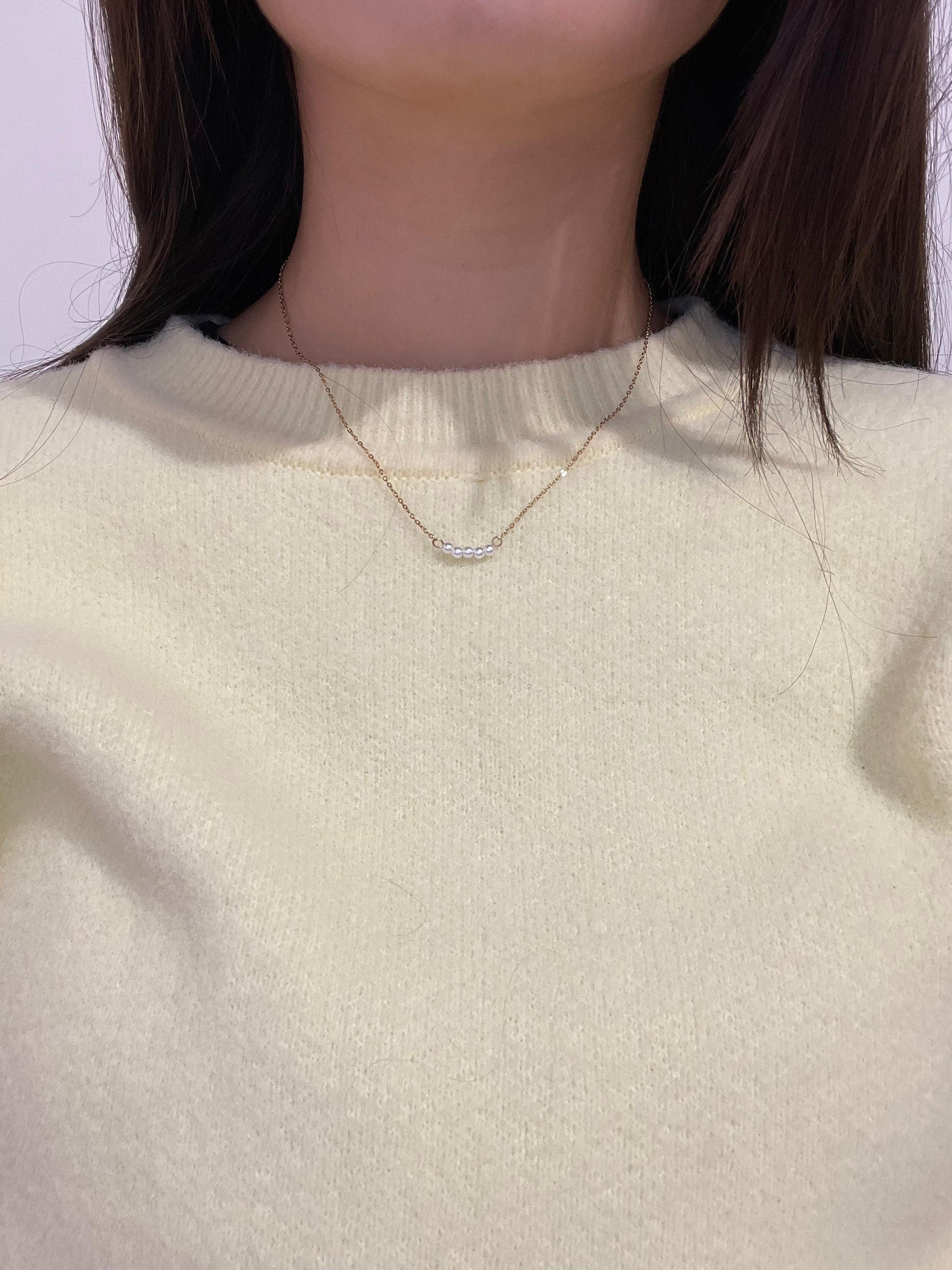 Eine zarte Halskette mit kleinen Perlen in der Mitte verleiht jedem Outfit subtile Eleganz. Perfekt für einen schicken, zeitlosen Look!