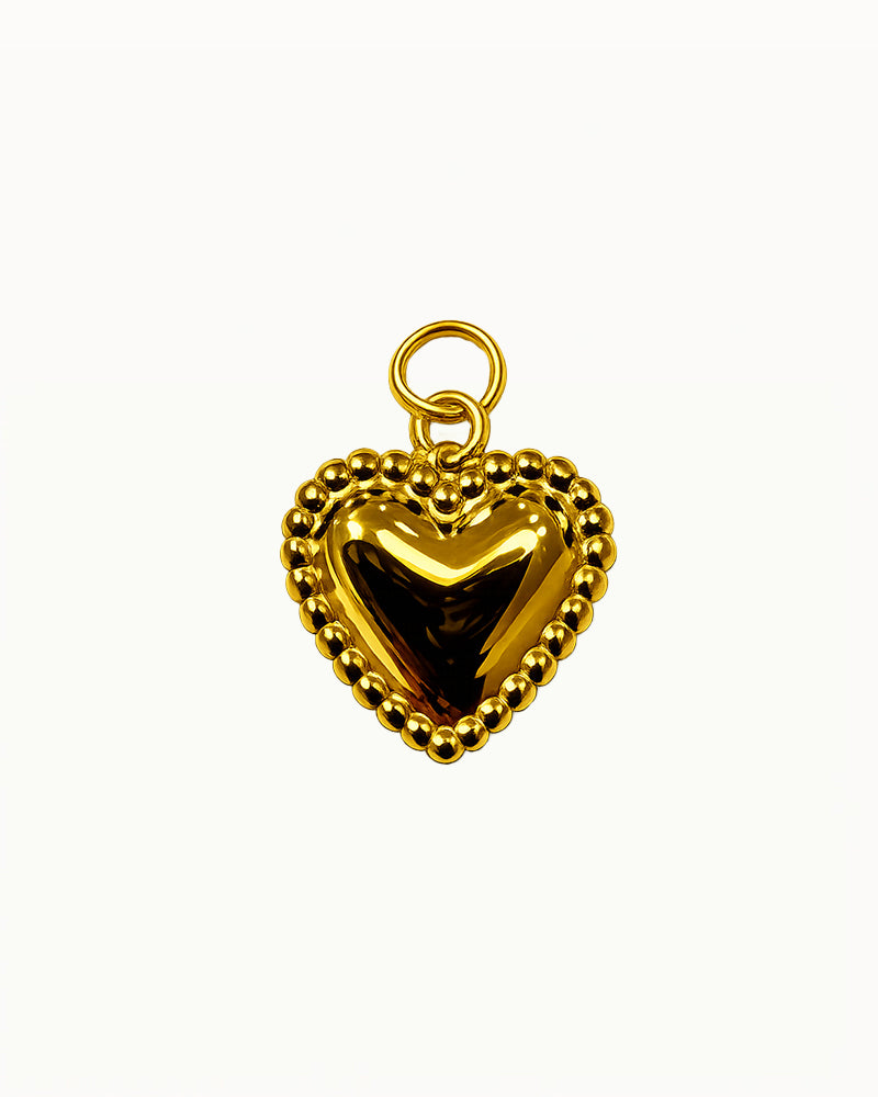 Deze gouden hart bedel met bolletjesrand is een klassiek en elegant sieraad met een luxe uitstraling. Het glanzende hartvormige ontwerp wordt omlijst door een verfijnde bolletjesrand, wat het bedeltje een tijdloos en sierlijk karakter geeft.