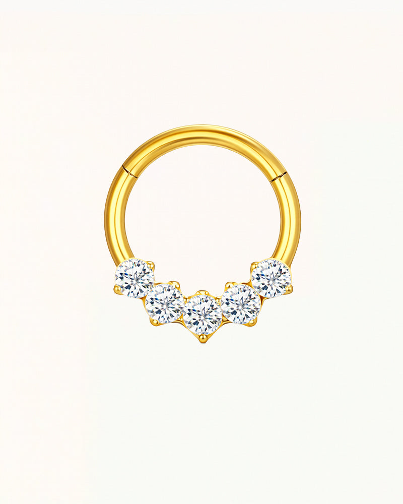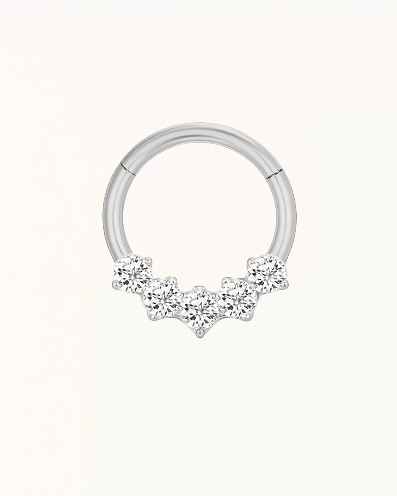 Deze elegante clicker ring met fonkelende stenen is perfect voor wie op zoek is naar een stijlvolle en duurzame piercing. Gemaakt van hoogwaardig titanium en volledig waterproof, is deze ring geschikt voor dagelijks gebruik en ideaal voor gevoelige huid.